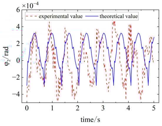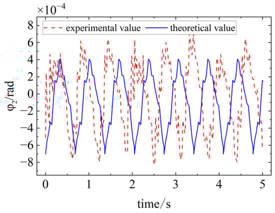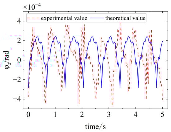 In Figure 26, Figure 27, Figure 28, Figure 29 and Figure 30, the results show that the theoretical and experimental curves are in general agreement in terms of trend and are numerically closer, which verifies the correctness of the theoretical model. In addition to the influence of the load at the output end and the rotational speed at the input end, the increase in the center distance makes the support position of the rod part of the oscillating teeth gear system change, which leads to the reduction in the meshing rigidity of the of the gear teeth and the increase in the vibration of the transmission system. According to the analysis of the meshing stiffness above, it can be seen that the increase in pressure angle makes the meshing stiffness increase, which can reduce the vibration of the system.