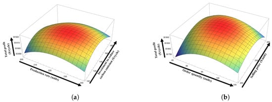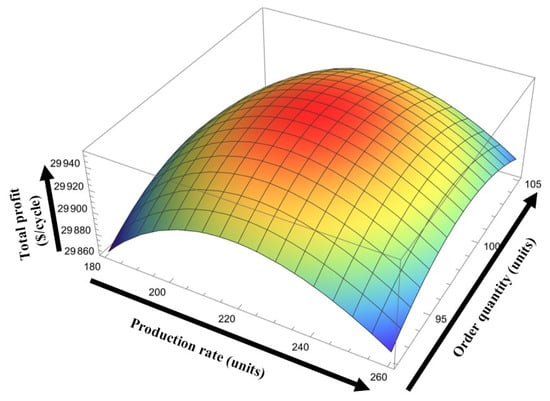 In traditional manufacturing systems, a constant production rate is considered with fixed production costs []. However, in reality, it is not always profitable to consider a fixed production rate. With uncertain market demand, the production rates need to be flexible. A fixed production rate may be harmful to industry. A fixed rate of production may increase the waste when the demand for the product is low or increase the shortage cost during high product demand. Thus, flexible production systems are always helpful in optimizing profit and making an economically sustainable production process []. Min and Chung [] proposed a distribution model by optimizing shipment size. They considered the concept of carbon emissions reduction in their study. However, the concept of green-level-dependent demand was ignored by them. AlDurgam et al. [] proposed a single vendor and single manufacturer integrated model under the consideration of a VPR. In their model, they considered random demand and proved a flexible production rate can help to minimize the cost and lead time. Similarly, [] considered a smart supply chain system under a VPR, where demand varies with the advertisement investment. They suggested that a VPR can help to control the lead time and backorder rate. A hybrid production system with a controllable production rate was formulated by Kim and Kim []. Kim and Kim [] considered a make-to-order stock-dependent VPR. Sarkar et al. [] developed a multistage complex production system with VPRs and remanufacturing. They conclude that VPRs can reduce the makespan and generation of defective items within a production process. Recently, Bachar et al. [] proposed an imperfect production system with reworking and partial outsourcing. They considered a flexible production rate for their system and proved that flexibility can help optimize the profit of the production process.