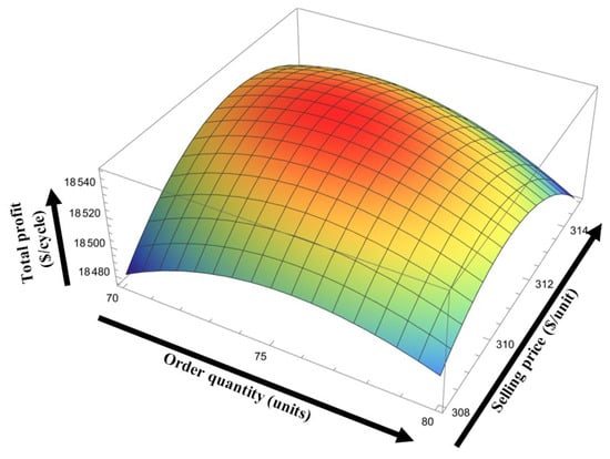 In this study, demand is considered as selling-price-dependent. Therefore, one can calculate the revenue by multiplying unit selling price and demand, i.e., the revenue of the system is . Now, the expected total profit of the system  can be calculated by subtracting the expected total cost from the revenue, which can be expressed by the following expression: