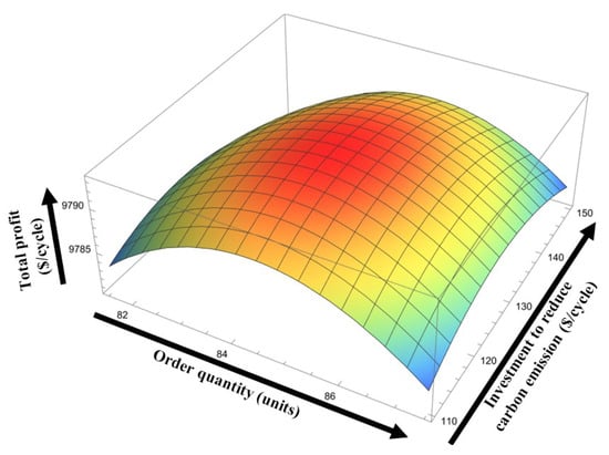 All those studies care about carbon emissions reduction through different approaches; however, as per the basic definition of sustainability, a system is called sustainable when three basic pillars (economic, environment, social) can be simultaneously developed []. Most of the studies considered only the environmental benefit of reducing carbon emissions. However, considering the three pillars, economic, environmental, and social, of sustainability in a model is very rare in the literature. In this study, profit optimization ensures economic benefits; the adaptation of partial outsourcing concept and the identification of defective items increase the labor, which ensures social benefits; and green products, GL-dependent demand and production rate, reworking, and investment in technology to reduce carbon emissions ensure the environmental benefits. Thus, the three basic pillars of sustainability are held in this study. Furthermore, a smart production system with reworking and partial outsourcing under the consideration of GL- and price-dependent demand is still not formulated in the literature. Thus, a pioneer study established in this article proposes a sustainable production system with reduced carbon emissions and optimized profit.