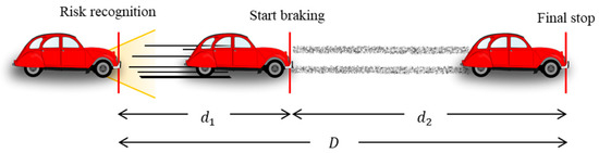 , calculated in Equation (2), represents the distance a vehicle travels during the driver’s reaction time
