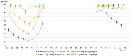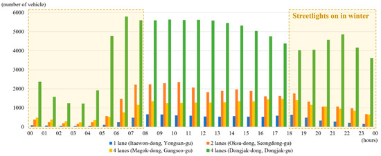 The lighting level of a road is determined by two factors specified in the Korean Road Safety Facility Installation and Management Guidelines: (1) the type of road, and (2) the type of traffic and vehicles. As listed in