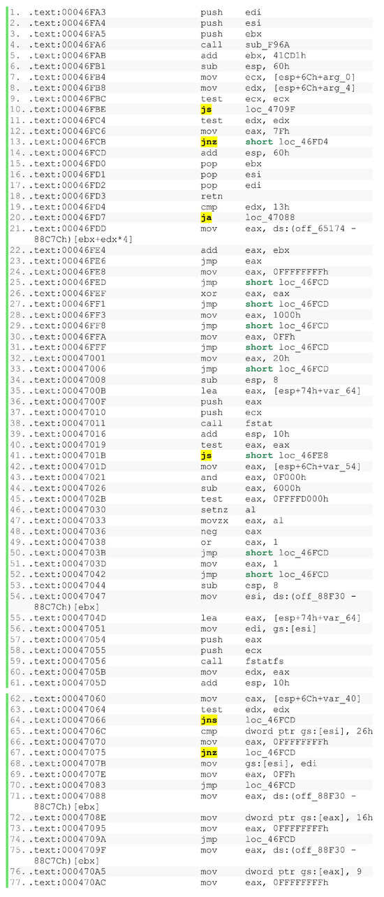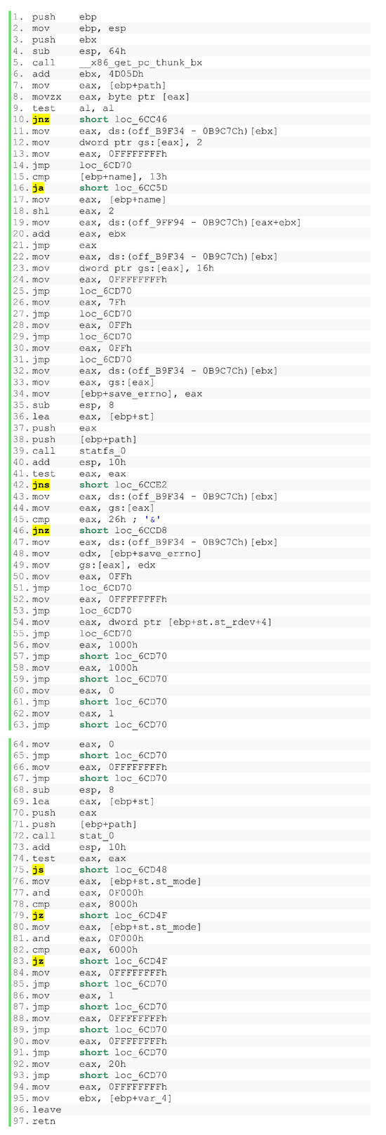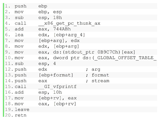 When performing analysis on those binaries, it is possible to find the original Assembly code, which runs in the manufacturer’s product. Usually, the full firmware is divided into several sections of a code, called a function, which requires easier and faster code analysis. It makes identification of library functions very easy without having to read them and without spend time on this. Standard library functions or just standard functions are sometimes more than of all functions of a software system.