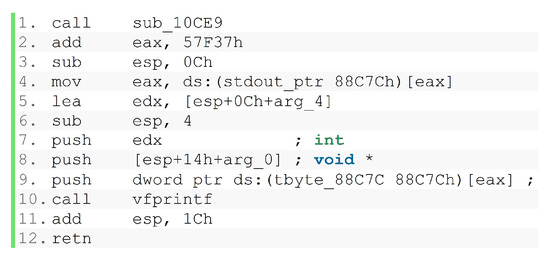 - Jacobson, E.; Rosenblum, N.; Miller, B. Labeling Library Functions in Stripped Binaries. In Proceedings of the 10th ACM SIGPLAN-SIGSOFT Workshop on Program Analysis for Software Tools, New York, NY, USA, 5–9 September 2011; pp. 1–8. [Google Scholar]