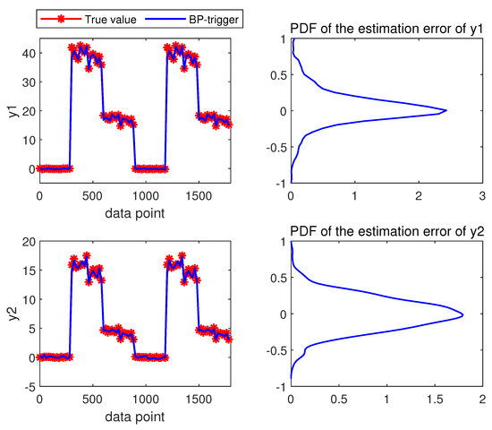 To facilitate a clear and intuitive assessment of the strengths and weaknesses of these methods, the error and their probability density function curves of several modeling prediction models are generated, as shown in Figure 11, respectively. It can be seen that for both outputs, the conventional BP neural network and OS-RVFLNs are wider and shorter, indicating a worse prediction performance. Compared to the other two methods, the pdf of the prediction error generated by the proposed BP-triggered relearning method has a much sharper and taller shape, indicating that the proposed method engaged a better prediction job.