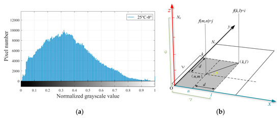 (a) Pixel gray scale frequency histogram; (b) correspondence in the pixel plane coordinate system [33].