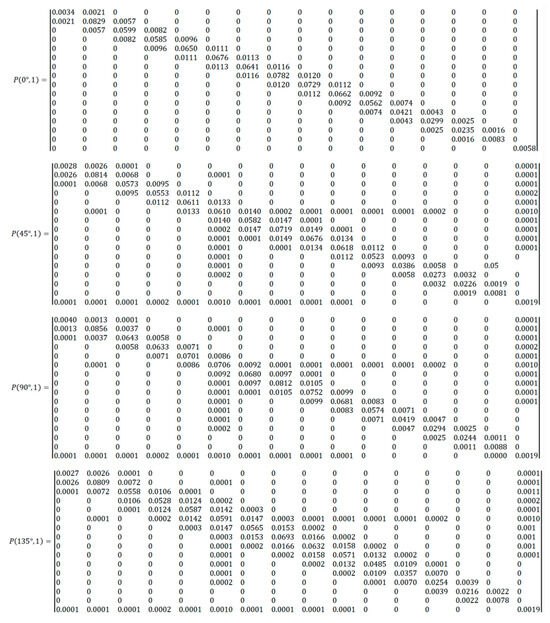 Schematic diagram of the normalized grayscale co-occurrence matrix of rock fracture surface (d = 1, direction: 0 °, 45 °, 90 °, and 135 °).