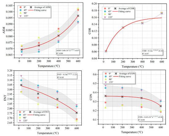- The four second-order statistical measures of the digitized fracture surface’s GLCM exhibit a high dependency on thermal disturbance temperature.