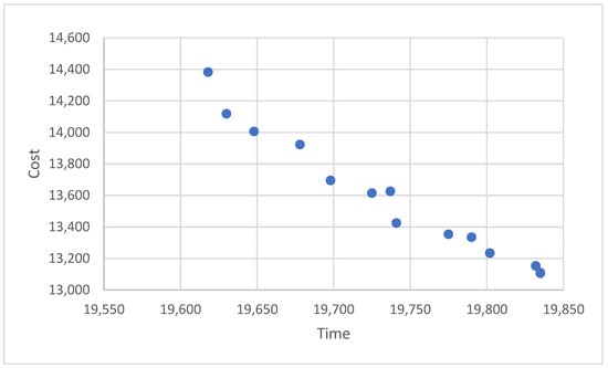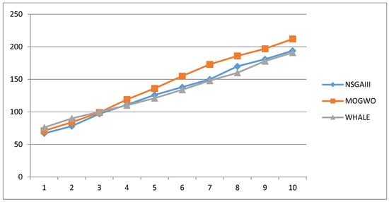 The basic problem above was solved using the ε-constraint method. The values of the objective functions and the Pareto figure indicated that the results were optimal (Table 2 and Figure 1).