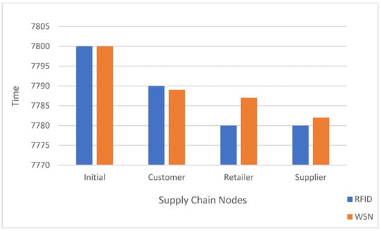 A supply chain may be defined as a set of entities and processes involved in fulfilling customer orders. The entities often include suppliers, manufacturers, distributors, retailers, and end-customers. Using IoT technology, supply chain managers can automatically identify the status of an object, warehouse, equipment, machinery, and even workers by gathering and employing real-time data. For example, RFID–IoT can detect the start/completion of a process through the entry/exit signal transmitted from the RFID–IoT coverage area [].