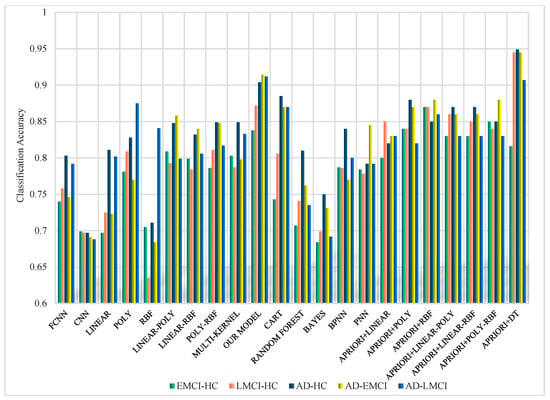 - Feng, Q.; Niu, J.; Wang, L.; Pang, P.; Wang, M.; Liao, Z.; Song, Q.; Jiang, H.; Ding, Z. Comprehensive classification models based on amygdala radiomic features for Alzheimer’s disease and mild cognitive impairment. Brain Imaging Behav. 2021, 15, 2377–2386. [Google Scholar] [CrossRef]