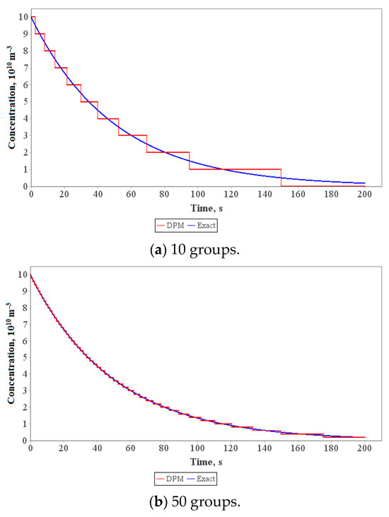 The results of the test calculations at different counts of particle groups in the DPM are presented in Figure 4.