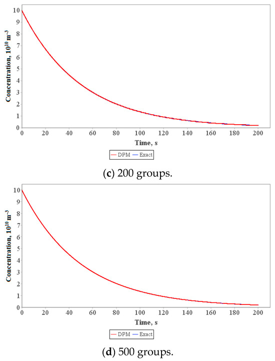 According to the dependences, after 200 groups the numerical solution is almost equal to the exact solution. Thus, the proposed numerical algorithm is verified.