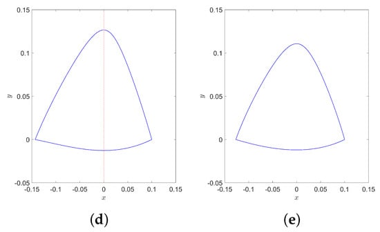 Through a large number of numerical experiments, we see that are weak center conditions. In the following, we provide some numerical simulations. Under condition , we choose a set of parameters , , and plot the diagram shown in Figure 2a. Under condition , we choose a set of parameters , , and plot the diagram shown in Figure 2b Under condition , we choose a set of parameters , , and plot the diagram shown in Figure 2c. Under condition , we choose a set of parameters , , and plot the diagram shown in Figure 2d. Under condition , we choose a set of parameters , , and plot the diagram shown in Figure 2e. From Figure 2, it is easy to see that under conditions , is a weak center.