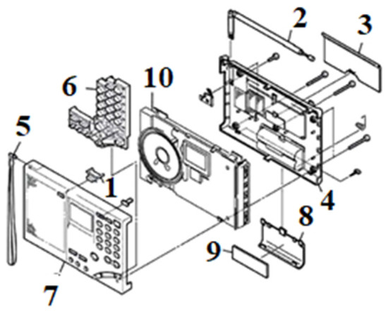 Figure 1 shows a ballpoint pen and Figure 2 is its AND-OR graph [44], which has six parts, thirteen disassembly tasks, and fifteen subassemblies. Figure 3 shows a radio and Figure 4 is its AND-OR graph [45], including 10 parts, 30 disassembly tasks, and 29 subassemblies. Figure 5 and Figure 6 show the assignment of tasks and skills on parallel workstations. As can be seen, a parallel disassembly line consists of two disassembly lines (I and II) with one worker at each workstation. Some workers can dismantle tasks on both sides of the line, while others are only responsible for dismantling tasks on one side of the line. In the disassembly sequence, the rectangle represents ballpoint pen (product I) and the circle represents radio (product II). It is worth noting that the disassembly sequence in the figure is decoded by workstation and does not represent the execution time order of the task.