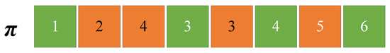 IDBA uses a vector for encoding. As shown in Figure 8, represents a feasible solution for this disassembly sequence. The green rectangle represents the disassembly task of product I, where the disassembly sequence of tasks is 1, 3, 4, and 6. Similarly, the orange rectangle represents the disassembly task of product II, where the disassembly sequence of tasks is 2, 4, 3, and 5. These tasks of two products are sequentially assigned to corresponding workstations.