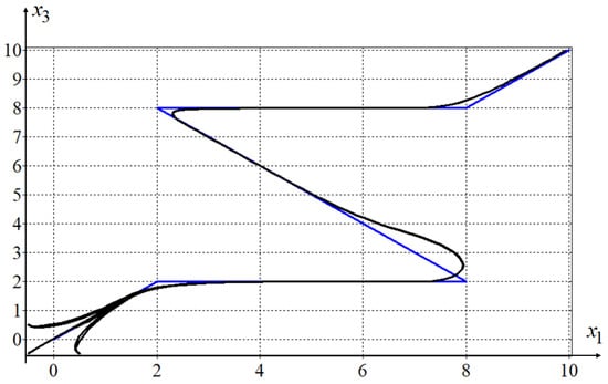 The second approach is applied when the trajectory is given in space. A stabilisation system is built relative to a point in state space and then these points are placed on the trajectory [6,7,8]. Switching points occur sequentially and the object moves from one point to another along a trajectory. This process is known as point tracking. This approach ensures accurate movement along the trajectory providing the intervals for switching points and their locations are optimally selected. Note that the movement of a control object from one stable point to another is not uniform. The speed of the object slows down as it approaches a stable point of equilibrium. At the equilibrium point, the object stops. Therefore, point tracking is not optimal if the quality criterion depends on the time of the control process. Each of these approaches, when executed carefully enough, can produce a satisfactorily accurate trajectory.