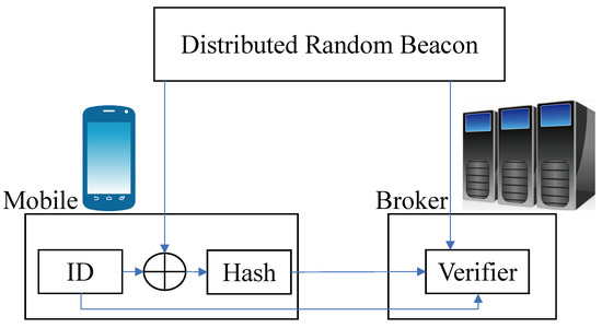 - Brokers validate the ID of mobile devices, verify that hash values generated by mobile devices are correctly produced, taking into account the distributed random beacon, and thus verify that mobile devices are authorized to connect.