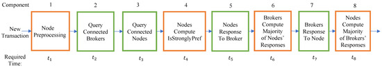 Our proposed scheme works as follows: each node connects to k brokers (represented by ) uniformly at random (the mechanism of k random connections will be discussed in the following subsection) and queries them on a new transaction T.