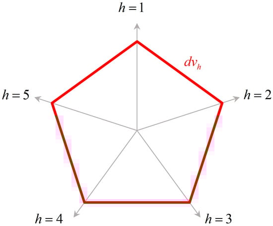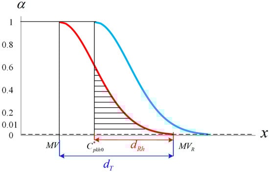 Similarly, let be the area between the vertical line , the fuzzy membership function of quality characteristic h, and the x-axis, as follows: