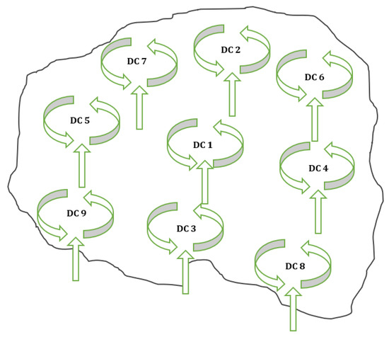 In order to tackle the issue, data spanning from 1 January 2022 to 1 January 2023 were employed. The observed timeframe was considered significant as it encompasses diverse variations in the demands attributed to seasonal patterns and other internal and external factors. The distribution within the examined area is categorized into nine primary distribution channels (DCs) (Figure 3).