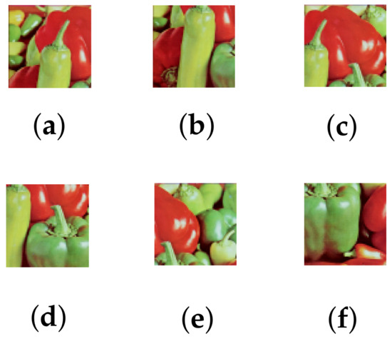 Partial color images. (a) window length ; (b) window length ; (c) window length ; (d) window length ; (e) window length ; (f) window length .