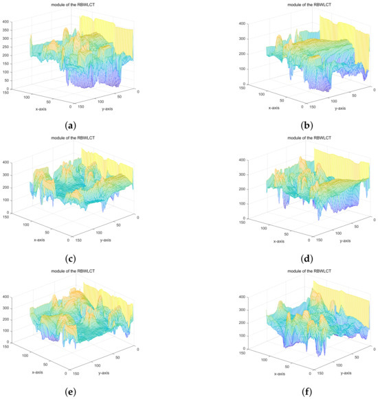 Part of the RBWLCT spectrum of color images. (a) window length ; (b) window length ; (c) window length ; (d) window length ; (e) window length ; (f) window length .