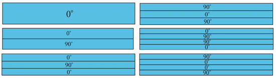 Cross-sections of laminated plates with various layer sequences and numbers.