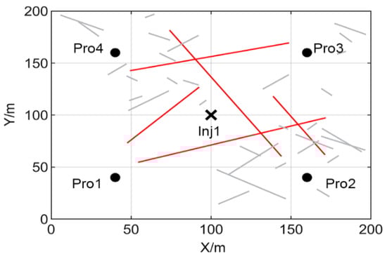 The reference model with major (red lines) and minor (gray lines) fractures.