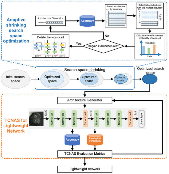 This research proposes a novel method for automatically designing lightweight neural network architectures specifically for coal and gangue classification tasks. The essence of this method lies in minimizing human intervention during the NAS process, thereby significantly enhancing the efficiency and performance of the search. The overall framework of TCNAS is shown in Figure 2.
