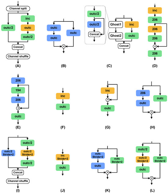 - Han, K.; Wang, Y.; Tian, Q.; Guo, J.; Xu, C.; Xu, C. Ghostnet: More features from cheap operations. In Proceedings of the IEEE/CVF Conference on Computer Vision and Pattern Recognition, Seattle, WA, USA, 13–19 June 2020; pp. 1580–1589. [Google Scholar]