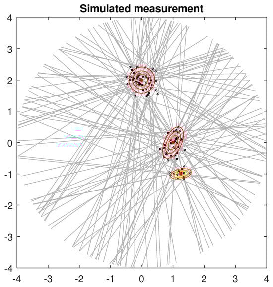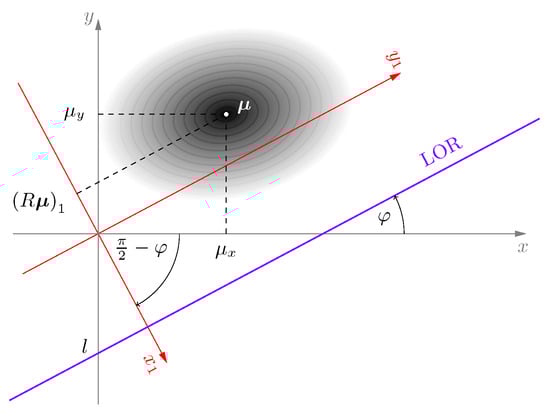 It has been shown that the mean can be estimated in many ways, e.g., from intersections of lines [] or directly from the sinogram []. For this part, we follow the methodology from [], which shows that the mean is accurately estimated as the point that minimizes the total squared Euclidean distance from all events. If we denote , the location of this point can be calculated as follows: