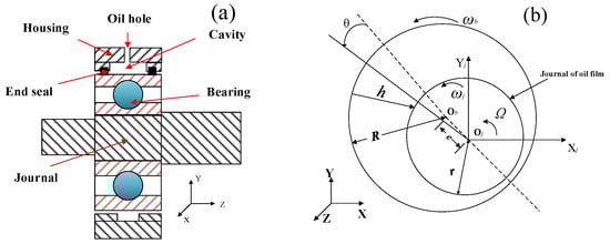 The eccentricity (ε) and the rate of change in the eccentricity and pressure angles do not change when the journal is moving in the bearing, and the axis lines of both are always kept parallel. Based on the above assumptions and