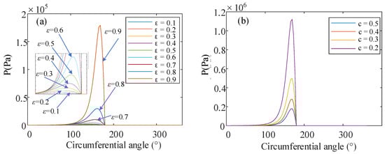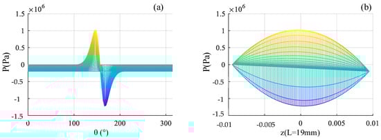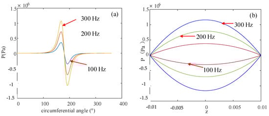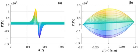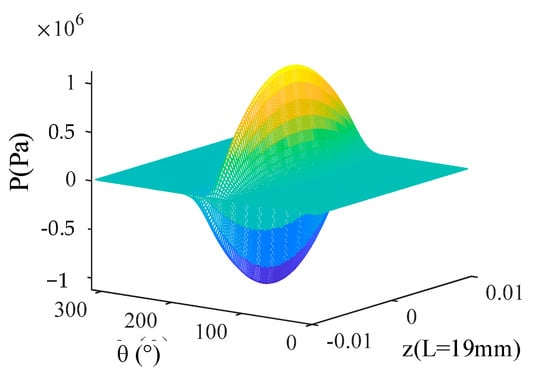 When there is no end seal in the SFD, the oil pressure at both ends is equal to atmospheric pressure, and the pressure of the inner and outer oil chambers is equal. The oil film distribution pressure can be obtained as follows: