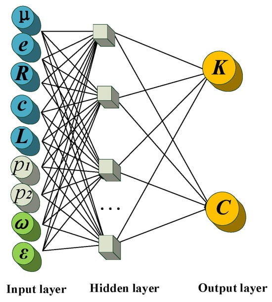 The nonlinear fast computational analysis method cannot be limited to elasto-hydrodynamic differential equations or finite difference numerical methods. As mentioned above, the oil film force formula and nonlinear dynamic model of SFD are complicated mathematical expressions, and it is difficult to deal with these important design parameters after sensitivity analysis. Therefore, the introduction of a surrogate model based on a neural network can well establish the relationship between the important parameters and the dynamic characteristics to achieve high-precision prediction of the damper dynamic parameters.