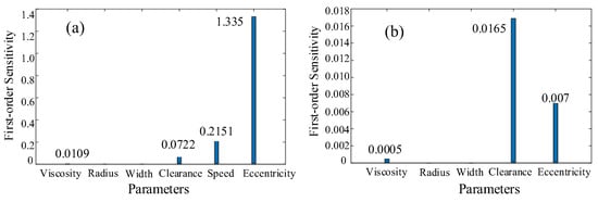 Figure 18. It can be seen that the sensitivity of the rotational speed, eccentricity, and oil film clearance is relatively high.