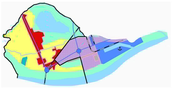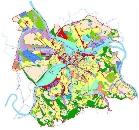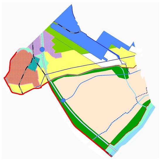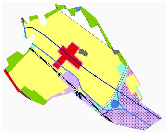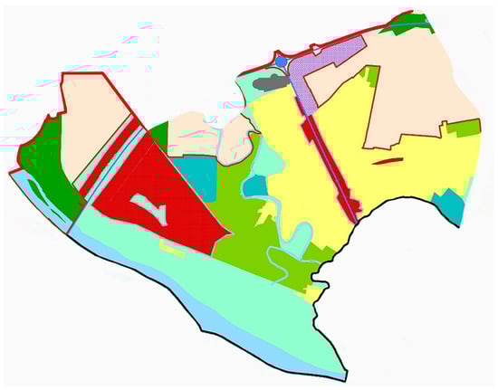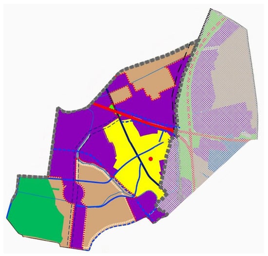 In this section of the paper, the focus is on establishing the groundwork for addressing the warehouse location selection problem. The initial foundation of the problem involves identifying and forming a list of alternatives for consideration, as well as a list of criteria by which the alternatives are assessed using appropriate methods. The primary challenge in implementing the proposed methodology lies in gathering information during interviews, as well as in defining criteria, alternatives, and their evaluations. Consequently, it would be most beneficial to conduct interviews with all experts simultaneously, facilitating the exchange of thoughts and perspectives, contributing to more robust information. For practitioners, a challenge may arise in the application of the model, particularly for those unfamiliar with MCDM methods. This challenge can be easily addressed by using the proposed model through Excel or by developing an application with a user-friendly interface. The model’s limitation is evident in its challenging application to problems with extremely large dimensions (given the large number of alternatives that need evaluation in accordance with criteria), although such situations are rare, especially in solving FLP where the number of potential alternatives is not typically substantial. The list of alternatives essentially comprises potential solutions, among which the optimal one must be chosen—the one that will most effectively satisfy the specified criteria. Potential locations were determined based on interviews with experts from the observed company who considered them for the establishment of a new warehouse. The preliminary foundation for selecting the warehouse location included the general urban plan of the city of Belgrade, illustrated in Figure 2. Areas designated for facility locations such as warehouses are highlighted in purple (industrial zones) and red (commercial facilities). Accordingly, locations with such designated areas were taken into consideration.