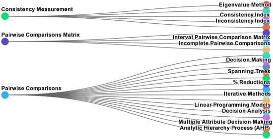Figure 1 presents a “conceptual map” generated by Scopus AI. This map groups the keywords into three branches, separating pairwise comparisons from the pairwise comparison matrix.