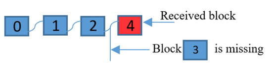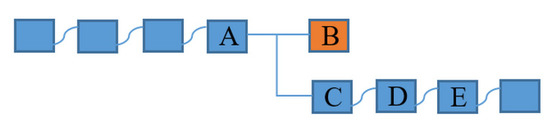 A fork occurs when a linear blockchain ledger is split into two or more chains. In blockchain networks, forks occur for many reasons, such as adding new functionality, changing rule sets, addressing security risks, and resolving disagreements within the community on two blocks of the same height as Bitcoin and Ethereum [25,26]. This also occurs because of the blockchain consensus mechanism, such as in Bitcoin, when two valid blocks are pointing to a similar, previous block and are created and broadcasted simultaneously to the network, and then a fork appears in the blockchain network. Figure 2 illustrates the forking issue in the blockchain network.