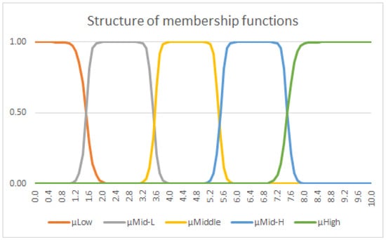 As illustrated in Figure 1, for (5 linguistic levels), in accordance with its original score or crisp, each component is converted into the sum of n membership functions.