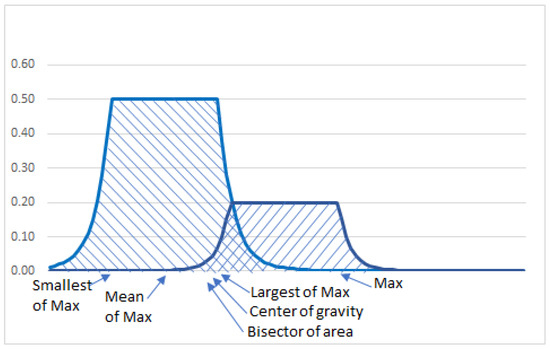 In actuality, it is feasible to explicitly determine the center of gravity of membership functions by clearly describing the functions. The following diagram presents a visual representation of the methodologies employed in the calculation of accurate output (Figure 2).