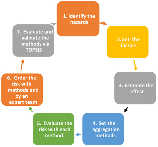 The variables are used to represent the risk incidents, where i ranges from 1 to n. Similarly, the variables are employed to designate the TOPSIS evaluation criteria, with j ranging from 1 to m. The variable represents the numerical results of the alternative with respect to the criteria .