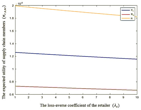 Thus, if the supplier wants to keep the order quantity from the retailer, the supplier needs to overcome the impact of their loss aversion by lowering the wholesale price or offering a higher revenue-sharing coefficient to benefit the retailer. The more the supplier fears loss, the lower their expected profit, reducing the efficiency of supply chain operations. This disrupts the linear relationship between the expected profits of the supply chain members and the supply chain system. The expected profit of the loss-averse supplier decreases with an increase in the profit-sharing coefficient under certain conditions.