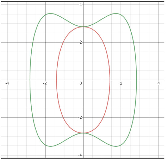 The expected profit from the perspective of the Quantum Harmonic formulation can be derived in analogy with the result obtained in Equation (3). Evidently, instead of stochastic variables, the quantum formulation works with operators. However, for the analysis of the RM problem, the semi-classical approach of the oscillator is superior because the problem can be visualized graphically through the phase space. The Hamiltonian (10) has naturally two eigenvalues , corresponding to each class. Since the first class is more expensive than the second class (for the same demand), then naturally it is expected that in general. The Hamiltonian (10) reflects the typical behavior of the RM problem. Plotted in the phase space, the Hamiltonian for the two-class problem is a four-dimensional ellipsoid. As an illustration, we can observe Figure 1 [10]. Note that this figure illustrates a three-dimensional surface for the purpose of illustration; however, we have to take into account that here we are considering a four-dimensional ellipsoid.
