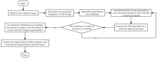 The flow chart of obtaining the optimal threshold by IDA-optimized multi-threshold image segmentation algorithm (Figure 4):