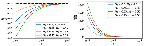 Proposition 3. For any Hurst exponent pair , and for any correlation coefficient , define the following pair of correlated fractional Brownian motions:where and are independent standard Brownian motions, and the operator is defined in Equation (7). Then their multiscale correlation function is as follows: Proof. Without loss of generality, let us take