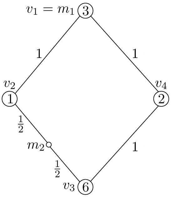 For an unconstrained 2-maxian problem on a modified cycle, the so-called vertex optimality property asserts that the problem has an optimal solution at the vertices [14]. However, this property does not apply in our problem. For example, for the graph in Figure 1, we find