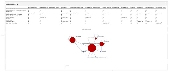 To increase the level of detail, such as the green bond transfer network of a specific region (or for a specific allocation year), additional controls can be added to the basic view of Figure 1. Then, we can filter the view to focus on a specific geographical region (or allocation year) (see Section 3).