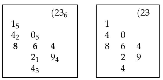 - Datta, B.; Singh, A.N. History of Hindu Mathematics I. Numeral Notation and Arithmetic; Motilal Banarsi Das: Lahore, Pakistan, 1935. [Google Scholar]
