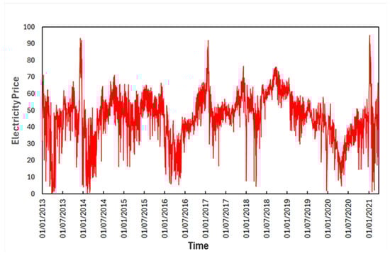 In all European markets, the day-ahead market session is held at 12:00 CET, where prices and electrical energies for the twenty-four hours of the next day are set. The price and volume of energy at a specific hour are established in such a way that supply and demand match, following the model agreed upon and approved by all of the European markets. Buy (sell) orders are accepted in order of increasing (decreasing) prices until the total demand (supply) is met [1]. Additionally, in each system there are several sessions in the intraday market to adjust, in real time, the bids made the previous day. Despite the existence of these sessions in the intraday market, the reliable prediction of electricity prices remains a major challenge to achieve the goal of maximizing profits for both electricity producers and buyers. In the case of electricity, the intrinsic difficulties of any prediction on the evolution of its price are increased by certain specific characteristics that differentiate it from other commodities. In this regard, it is worth noting the high volatility of electricity prices, which is largely due to the impossibility of storing it and to fluctuations in its demand [2].